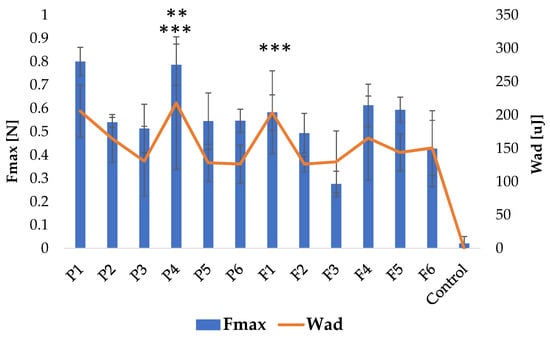 The assessment of the mucoadhesive ability of the prepared films was performed by the TA.XT.Plus Texture Analyzer (Stable Micro Systems, Godalming, UK) and the porcine buccal mucosa was applied. Trial indicators of the test were: pretest speed of 0.5 mm/s, test and post-test speeds of 0.1 m/s, the time of contact was 180 s and force of 1 N. The mucoadhesive properties were expressed as the work of mucoadhesion (Wad) and the maximum detachment force (Fmax).