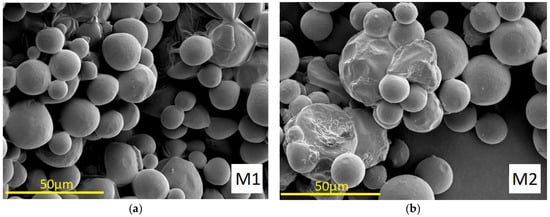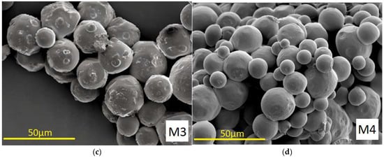 The morphology of PLGA microparticles M1–M4 loaded with VAN produced by emulsion spray drying is shown in Figure 1.