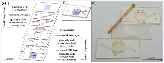 The two glass layers of the respective compartments were joined by means of the DSA layers, as illustrated in Figure 2b. The basal and apical compartments were finally connected with a contoured silicone layer as a seal.