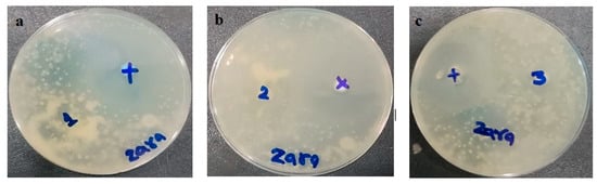 The prepared MCNR transethosomal gel (MNTG), MCNR plain gel (MNPG), and marketed product (Daktarin® cream 2%) were tested using the cup plate method for their antifungal activity against Candida albicans. The positive control used was fluconazole, which served as a standard drug. Findings are displayed in Figure 10 and Table 7. The zone of inhibition was measured to ascertain the antifungal activity [69]. It was found that the MNTG (transethosomal gel) had a 20.5 ± 0.02 mm zone of inhibition, while the marketed cream had a 16 ± 0.01 mm zone of inhibition. The least noticeable inhibitory zone of 11 ± 0.05 mm was measured in MNPG (plain gel). Results revealed that the MNTG (transethosomal gel) had more antifungal activity than the marketed cream and plain gel. Moreover, it was noticed that the antifungal activity of MCNR was enhanced by introducing it into transethosomal gel. This may be explained by transethosomes’ high degree of flexibility, which allowed them to penetrate the Candida albicans fungal cell walls, and by their suppression of ergosterol synthesis, which causes the lysis of fungal cell membrane and death [25]. The profound antifungal activity of MCNR obtained from the MNTG (transethosomal gel) was demonstrated in earlier research to be linked with nanosized vesicles, the mucoadhesive characteristics of the Carbopol, and the considerable solubility of MCNR upon the addition of surfactant.