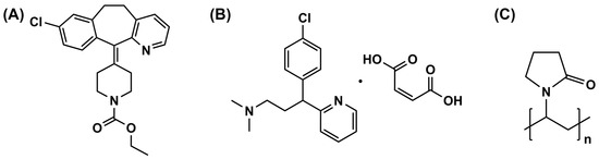 Chemical structure of LRD (A), CPM (B), and PVP (C).