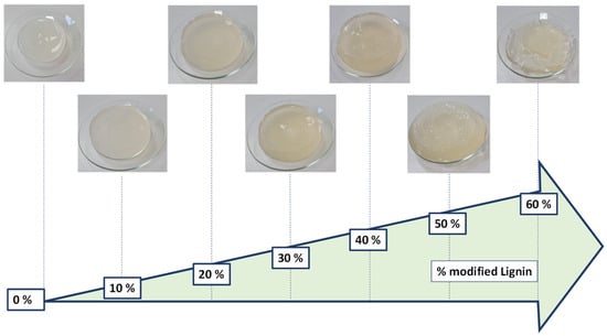 Lignin is an excellent candidate for chemical modifications, due to its high functionality (the presence of phenolic and aliphatic hydroxyl groups), which gives the possibility of developing new biomaterials [13]. It is expected that the incorporation of LE with high contents of ether bonds would provide higher structural flexibility of the hydrogels, an improved swelling capacity, and also antimicrobial properties [22].