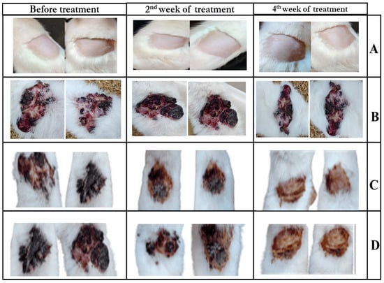 - Visual observation: Visual observation was carried out on the animals of Group 1, Group 2, Group 8 and Group 9. During the treatment period, the animals were visually observed weekly once up to the third week and on the last date of the treatment (30th day) for the reduction in BCC. The treated areas of the skin were photographed every 2 weeks until the completion of the treatment.