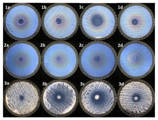 After 24 h of incubation at 37 °C, the growth inhibition was assessed under standard conditions to evaluate the antimicrobial properties. To ensure the accuracy of the results, each test was carried out three times. The samples were examined after incubation using SCAN1200®, version 8.6.10.0 (Interscience, Saint-Nom-la-Bretèche, France), and the results were reported as the mean ± standard deviation (SD) using XLSTAT Ecology version 2019.4.1 software [54].