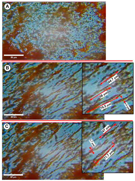 Figure 11A demonstrates that the sample initially showed no agglomerates but showed pre-existing cluster aggregates. The size distribution and volume fraction of particles and the applied field’s strength determine the kinetics of field-induced aggregation in ferrofluids. A ferrofluid system will be thermodynamically stable without a magnetic field [38]. When subjected to a magnetic field, however, the stability is lost, and to re-establish equilibrium, both clusters and aggregates begin to aggregate/agglomerate to produce two distinct phases, namely carrier fluid and the formed structures.