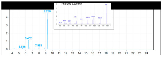 The gas chromatography–mass spectrometry (GC-MS) instrument was a 7890B GC-5977A MSD system (Agilent Technologies, Santa Clara, CA, USA) equipped with an HP-5MS UI, 30 m × 0.25 mm, 0.25 μm (Agilent Technologies) column. Helium was used as the carrier gas with a flow rate of 1 mL/min. The oven program: 60 °C (1 min), 60–250 °C (ramp 10 °C/min), hold 250 °C (5 min). Spitless injection, 1 μL sample volume injected into the column. MS detection parameters: scan mode, in the range of 40–500 m/z. MS spectra analysis was performed using NIST14 and MPW5e (version 14) (Wiley) libraries. Sample preparation: essential oil samples were diluted 400-fold with hexane (GC-MS purity).