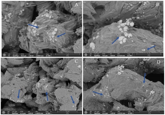 The optimum CER-NP-loaded liposome was dispersed in a 4% mannitol solution as a cryoprotectant. The dispersion system was lyophilized in Scanvac Lyophilizer (Labogene, Lillerød, Denmark) for 24 h. The powder was applied on aluminum cylinder sample stubs (12.7 diameter, 1 mm height) covered with double-sided carbon tape. The dust on the samples was removed by blowing air with an air pump. The optimum CER-NP-loaded liposome was imagined via Apreo2S FE-SEM (Thermo Fischer Scientific, Waltham, MA, USA) with a T1 segmented lower in-lens detector. The imagining was carried out under a 1 kV high vacuum without an Au/Pd conductive coat (FE-SEM Mag: 10,000-100,000×). The FE-SEM imagining of the optimum CER-NP-loaded liposome.