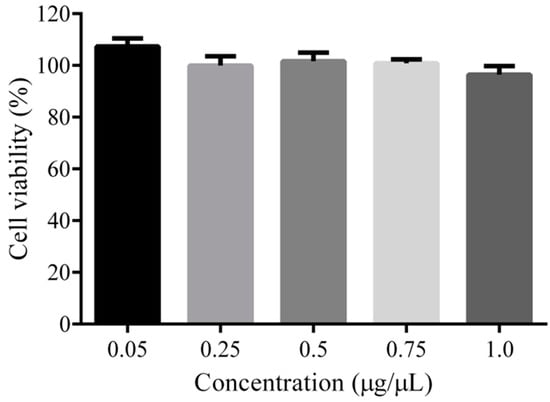 The cytotoxicity of the PEG-PLLA copolymer was determined by a CCK-8 assay. C6 cells were cultured with the copolymer of PEG-PLLA under different concentrations for 24 h, and the results are shown in Figure 8. These results indicated that the copolymer of PEG-PLLA prepared in this study had little effect on the viability of C6 cells compared to that of the blank control.