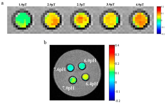 - Ward, K.; Balaban, R.S. Determination of pH using water protons and chemical exchange dependent saturation transfer (CEST). Magn. Reson. Med. 2000, 44, 799–802. [Google Scholar] [CrossRef]