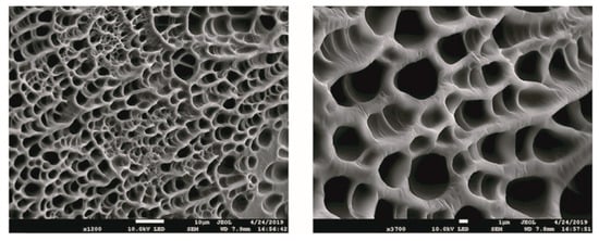 Cross-linked mesh structure of hydrogels observed using scanning electron microscopy [45].