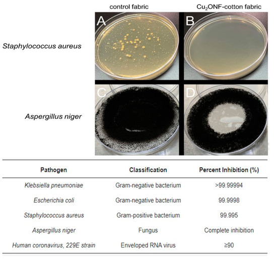 - Silva, D.J.; Barbosa, R.F.; Souza, A.G.; Ferreira, R.R.; Camani, P.H.; Rosa, D.S. Morphological, UV blocking, and antimicrobial features of multifunctional cotton fibers coated with ZnO/Cu via sonochemistry. Mater. Chem. Phys. 2022, 286, 126210. [Google Scholar] [CrossRef]