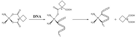Metabolic steps of carboplatin. “*” stands for 14C.