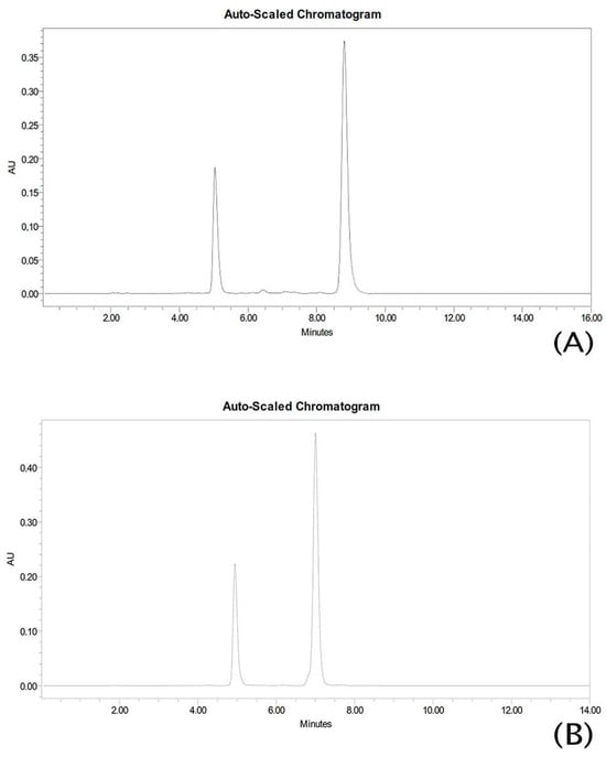 HPLC chromatograms (A) flavanone I and (B) flavanone II correspond to flavanone standard solution.