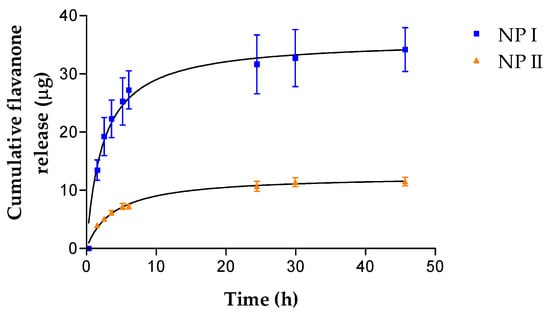 Cumulative amount released of flavanone I and II from NPs plotted against time.