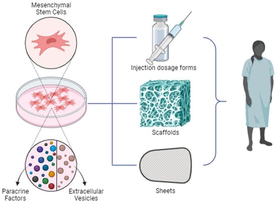 - Srinivasan, A.; Fults, M.L.; Supronowicz, P.; Esquivel, R.; Zamilpa, R. Mesenchymal Stem Cell e Derived Products for Tissue Repair and Regeneration; Elsevier: Amsterdam, The Netherlands, 2019. [Google Scholar] [CrossRef]