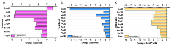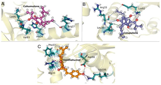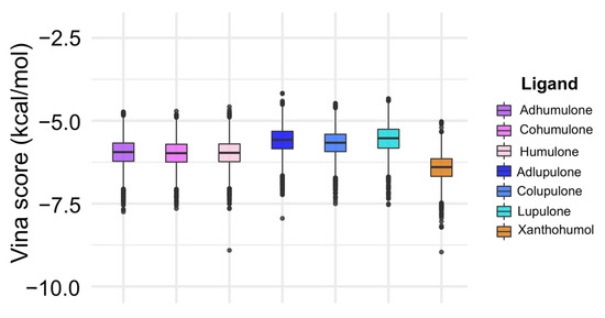 | Humulone | −8.910 | −6.236 | −5.968 | −5.978 | −5.701 | −4.578 | 0.3983 |