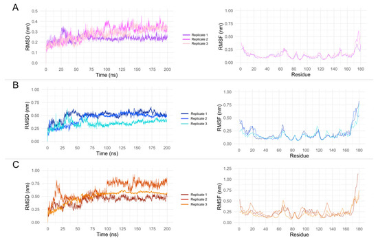 - Van Der Spoel, D.; Lindahl, E.; Hess, B.; Groenhof, G.; Mark, A.E.; Berendsen, H.J.C. GROMACS: Fast, Flexible, and Free. J. Comput. Chem. 2005, 26, 1701–1718. [Google Scholar] [CrossRef]