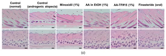 - Zhu, H.L.; Gao, Y.H.; Yang, J.Q.; Li, J.B.; Gao, J. Serenoa repens extracts promote hair regeneration and repair of hair loss mouse models by activating TGF-β and mitochondrial signaling pathway. Eur. Rev. Med. Pharmacol. Sci. 2018, 22, 4000–4008. [Google Scholar]