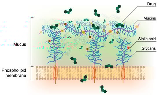 The mucosal barrier. Drugs administered by the oral, inhalation, or vaginal routes must cross the mucus layer and the cellular membrane in order to be absorbed. Due to its complex structure and chemical diversity, mucus can interact with drugs via different mechanisms and selectively filter their permeation.