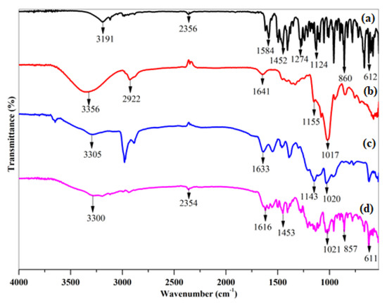 On the other hand, Bands relating to the non-complex component remain unchanged. The sharp absorption band at 1641 cm−1 has been shifted to 1616 cm−1. Absorption peaks at 1274 cm−1, 1124 cm−1, and 1143 cm−1 vanished or were submerged by peaks of loaded polymeric nanobeads, as shown in Figure 3. VRC was loaded into the hydrophobic cavity of HPβCD, which was consistent with the XRD data.
