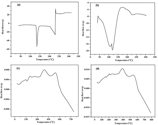 DSC of VRC (a), HPβCD (b), Blank (c), and loaded (d) HPβCD based polymeric nanobeads.