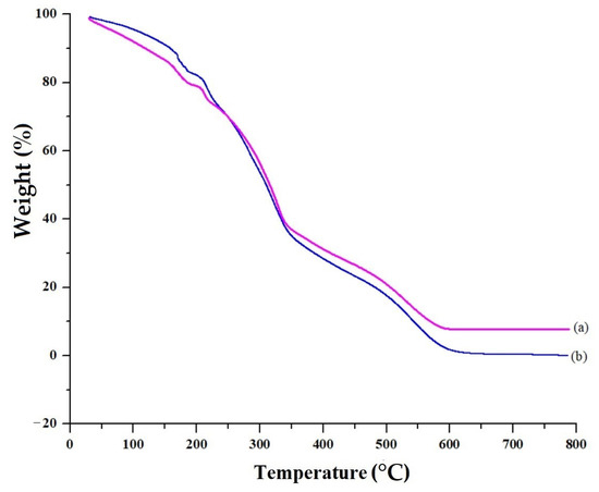 TGA of Blank (a) and loaded (b) HPβCD based polymeric nanobeads.
