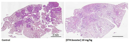 Hwang et al. investigated in 2015 INH-loaded mesoporous SiNPs [118]. Tests were carried out in vivo on mice infected with Mtb and treated with NPs, using the intravenous or subcutaneous route. At equivalent doses, NPs produced an antibacterial effect four times more important than free INH, in the lungs (reduction in the bacterial burden of 1.3 log10 colony-forming units (CFUs)), in the liver (reduction of 2.1 log10 CFUs), and in the spleen (reduction of 3.9 log10 CFUs). The effectiveness of the formulation could be observed even with the naked eye on the lung tissues extracted from the treated mice, which showed a reduced number of granulomas compared to those of mice treated with free INH (Figure 10).