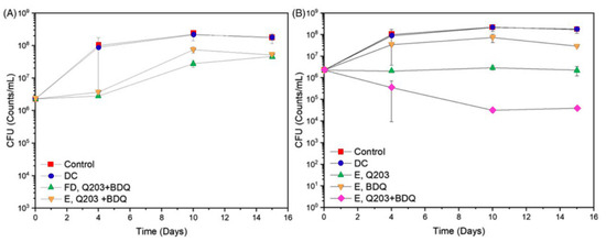 - Chauhan, P.; van der Meulen, S.A.; Simões Caetano, J.M.; Goojani, H.G.; Botman, D.; van Spanning, R.; Lill, H.; Bald, D. Response of Mycobacterium Smegmatis to the Cytochrome Bcc Inhibitor Q203. Int. J. Mol. Sci. 2022, 23, 10331. [Google Scholar] [CrossRef]