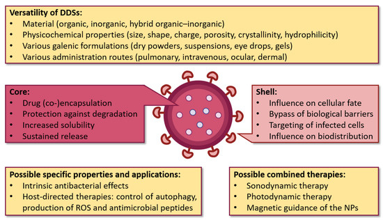 The main assets of NPs will be illustrated: (i) delivering antibiotics to the site of infection and increasing their bioavailability; (ii) potentiating the antibacterial effect while reducing the posology; (iii) diminishing the treatment toxicity; (iv) diminishing the treatment complexity; (v) exploiting the antibacterial effect of the nanocarrier itself; and finally, (vi) encapsulating new antitubercular drugs. Other important trends in the field, such as host-directed therapies, will also be presented.