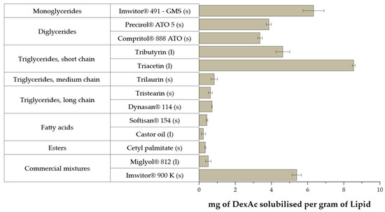 - Bertoni, S.; Passerini, N.; Albertini, B. Liquid Lipids Act as Polymorphic Modifiers of Tristearin-Based Formulations Produced by Melting Technologies. Pharmaceutics 2021, 13, 1089. [Google Scholar] [CrossRef] [PubMed]