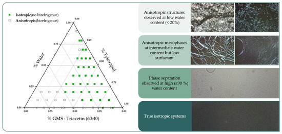 - Morley, W.G.; Tiddy, G.J.T. Phase behaviour of monoglyceride/water systems. Faraday Trans. 1993, 89, 2823–2831. [Google Scholar] [CrossRef]