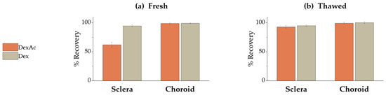 3.6. Validation of a DexAc Extraction Method from Porcine Sclera and Choroid