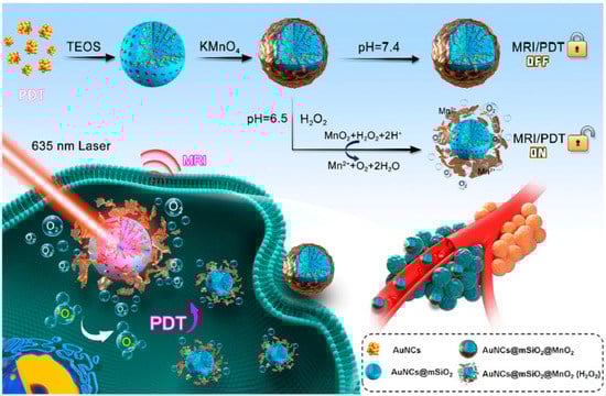 Schematic representation of synthesis and PDT efficiency of AuNC@mSiO2@ MnO2 (H2O2) nanosystem. Reproduced with permission [131]. Copyright 2021 ACS.