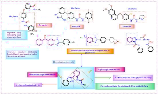 Aroua, L.M.; Alosaimi, A.H.; Alminderej, F.M.; Messaoudi, S.; Mohammed, H.A.; Almahmoud, S.A.; Chigurupati, S.; Albadri, A.E.A.E.; Mekni, N.H. Synthesis, Molecular Docking, and Bioactivity Study of Novel Hybrid Benzimidazole Urea Derivatives: A Promising α-Amylase and α-Glucosidase Inhibitor Candidate with Antioxidant Activity. Pharmaceutics 2023, 15, 457. https://doi.org/10.3390/pharmaceutics15020457