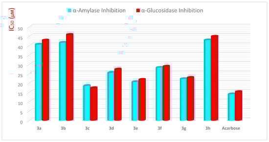 | Compounds 3 | α-Amylase Inhibition IC50 ± SEM (µM) | α-Glucosidase Inhibition IC50 ± SEM (µM) |