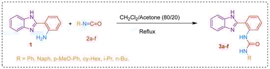 4.2. Chemistry: Benzimidazole-Ureas 3a–h Synthesis: General Procedure