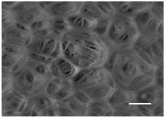 SEM micrograph of MS/K-4 wall structure. Scale bar: 3 μm; magnification: 13,000×.