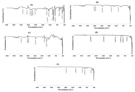 Figure 2b shows the FTIR spectrum of phosphatidylcholine with significant peaks at 2922.65 cm−1 and 2837.03 cm−1 due to long-chain fatty acid C-H stretching [86]. Symmetric C=O stretching vibration was observed at 1729.62 cm−1 [87], and peaks of phosphate-groups-building phospholipid appeared at 1250.12 cm−1 [88].