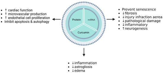 - Kalani, A.; Chaturvedi, P.; Kamat, P.K.; Maldonado, C.; Bauer, P.; Joshua, I.G.; Tyagi, S.C.; Tyagi, N. Curcumin-Loaded Embryonic Stem Cell Exosomes Restored Neurovascular Unit Following Ischemia-Reperfusion Injury. Int. J. Biochem. Cell Biol. 2016, 79, 360–369. [Google Scholar] [CrossRef]