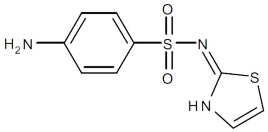 Therefore, MMT is a good candidate to design a new release system of drugs, such as sulfathiazole (STZ), which is a hydrophobic antimicrobial used to treat oral, ophthalmological, gastrointestinal, and dermatological infections (Figure 1). Specifically, this antibiotic is very effective in treating infections caused by pneumococci, streptococci, and staphylococci. STZ is generally administered orally and presents low aqueous solubility [18,19], so its dissolution is a limiting factor in the adsorption rate [20]. Therefore, it is necessary to administer high oral doses of the drug for effective treatments. In addition, its use in humans has currently decreased due to the appearance of resistance and the discovery and generalization of more effective and less toxic alternatives. Hence, STZ is a target drug for improving its biopharmaceutical profile through novel dosage systems that increase its solubility and reduce side effects and drug resistance.