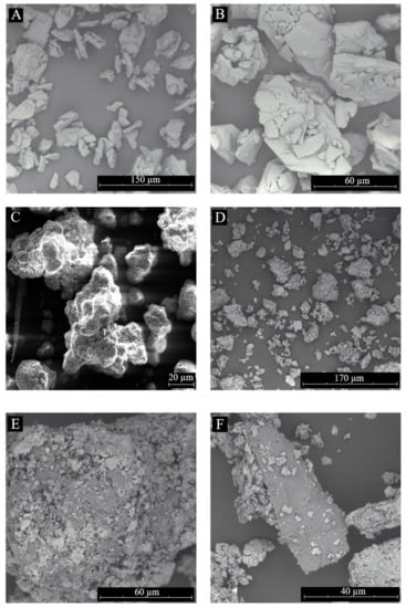 Microphotographs of the samples were obtained using a Phenom™ G2 pro scanning electron microscope with a voltage of 5 kV and a high-sensitivity backscattered electron detector (Professional Phenom Desk Scanning Electron Microscope, ThermoFisher Scientific, Waltham, MA, USA). The samples were deposited in powder form directly on a previously prepared double-sided carbon adhesive tape on the aluminum button. The images were captured digitally using the program coupled to the microscope (Phenom-World ProSuite Software).