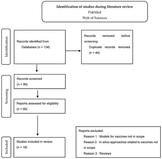According to the results from our study, there are seven studies using PBPK models to support vaccine development; three studies using PopPK; six studies using ABMs models; four ODEs models; 1 MP; and one study using different Computational Vaccine Design techniques. Some of these models combined two or more in silico approaches. For instance, for the Recombinant multi-epitope vaccine against influenza A virus model, a complex Computational Vaccine Design approach to predicting epitopes and selecting adjuvants, to evaluate physicochemical properties and solubility, to predict secondary structure properties, and finally, to immunogenicity and related immune. For these, many software and modeling techniques were combined.