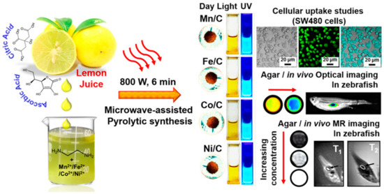 - Rub Pakkath, S.A.; Chetty, S.S.; Selvarasu, P.; Vadivel Murugan, A.; Kumar, Y.; Periyasamy, L.; Santhakumar, M.; Sadras, S.R.; Santhakumar, K. Transition metal ion (Mn2+, Fe2+, Co2+, and Ni2+)-doped carbon dots synthesized via microwave-assisted pyrolysis: A potential nanoprobe for magneto-fluorescent dual-modality bioimaging. ACS Biomater. Sci. Eng. 2018, 4, 2582–2596. [Google Scholar] [CrossRef] [PubMed]