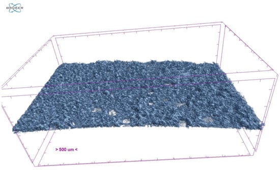 The samples were put on carbon tape attached to the aluminum holder. They were observed under a scanning electron microscope Hitachi SU 8010 (Hitachi High Technologies, Minato, Japan) at a magnification of 50–1100× (at 10 kV, SE detector, and the working distance of 8 mm).