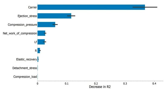 In addition to determining the best predictive model, one of the goals of the regression analysis was to determine which of the input variables were the most important for the model’s performance, i.e., to what extent removing one of the input variables affected the model’s predictive ability. The data obtained are shown in Figure 5.