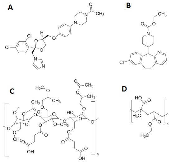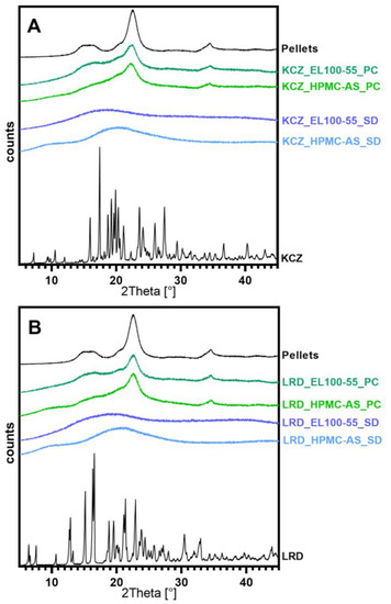 - Monschke, M.; Kayser, K.; Wagner, K.G. Influence of Particle Size and Drug Load on Amorphous Solid Dispersions Containing pH-Dependent Soluble Polymers and the Weak Base Ketoconazole. AAPS PharmSciTech 2021, 22, 44. [Google Scholar] [CrossRef] [PubMed]