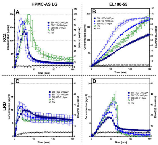 - Zecevic, D.E.; Meier, R.; Daniels, R.; Wagner, K.-G. Site specific solubility improvement using solid dispersions of HPMC-AS/HPC SSL—Mixtures. Eur. J. Pharm. Biopharm. 2014, 87, 264–270. [Google Scholar] [CrossRef] [PubMed]