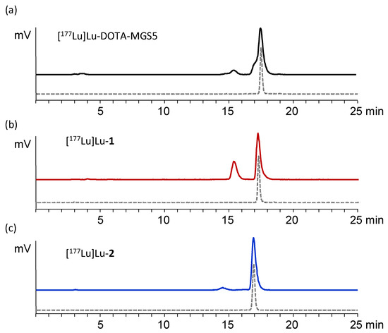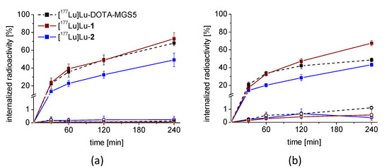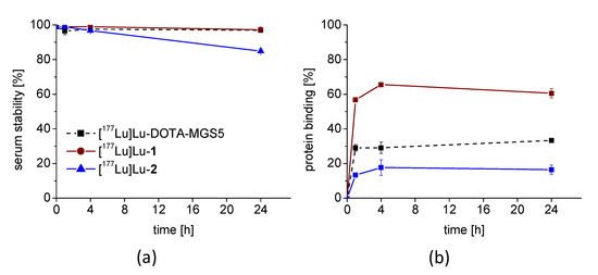 - Ocak, M.; Helbok, A.; von Guggenberg, E.; Ozsoy, Y.; Kabasakal, L.; Kremser, L.; Decristoforo, C. Influence of Biological Assay Conditions on Stability Assessment of Radiometal-Labelled Peptides Exemplified Using a 177Lu-DOTA-Minigastrin Derivative. Nucl. Med. Biol. 2011, 38, 171–179. [Google Scholar] [CrossRef] [PubMed]