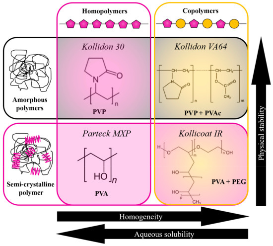 - Lehmkemper, K.; Kyeremateng, S.O.; Heinzerling, O.; Degenhardt, M.; Sadowski, G. Long-Term Physical Stability of PVP- and PVPVA-Amorphous Solid Dispersions. Mol. Pharm. 2017, 14, 157–171. [Google Scholar] [CrossRef] [PubMed]