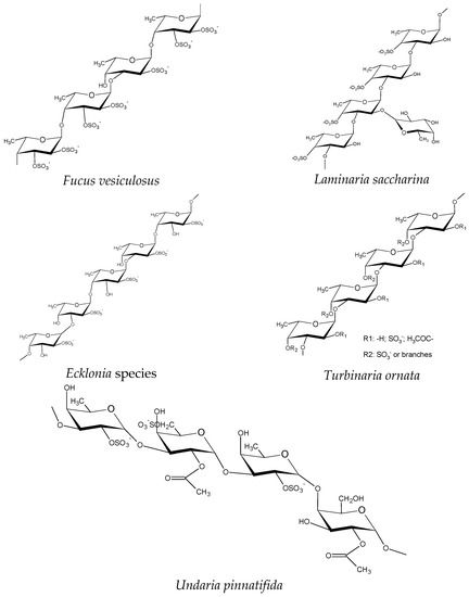 - Pomin, V.H.; Mourão, P.A.S. Structure, Biology, Evolution, and Medical Importance of Sulfated Fucans and Galactans. Glycobiology 2008, 18, 1016–1027. [Google Scholar] [CrossRef] [PubMed]